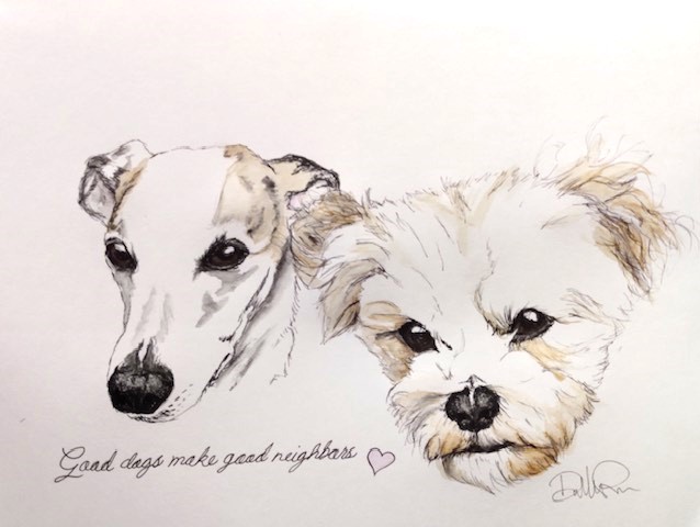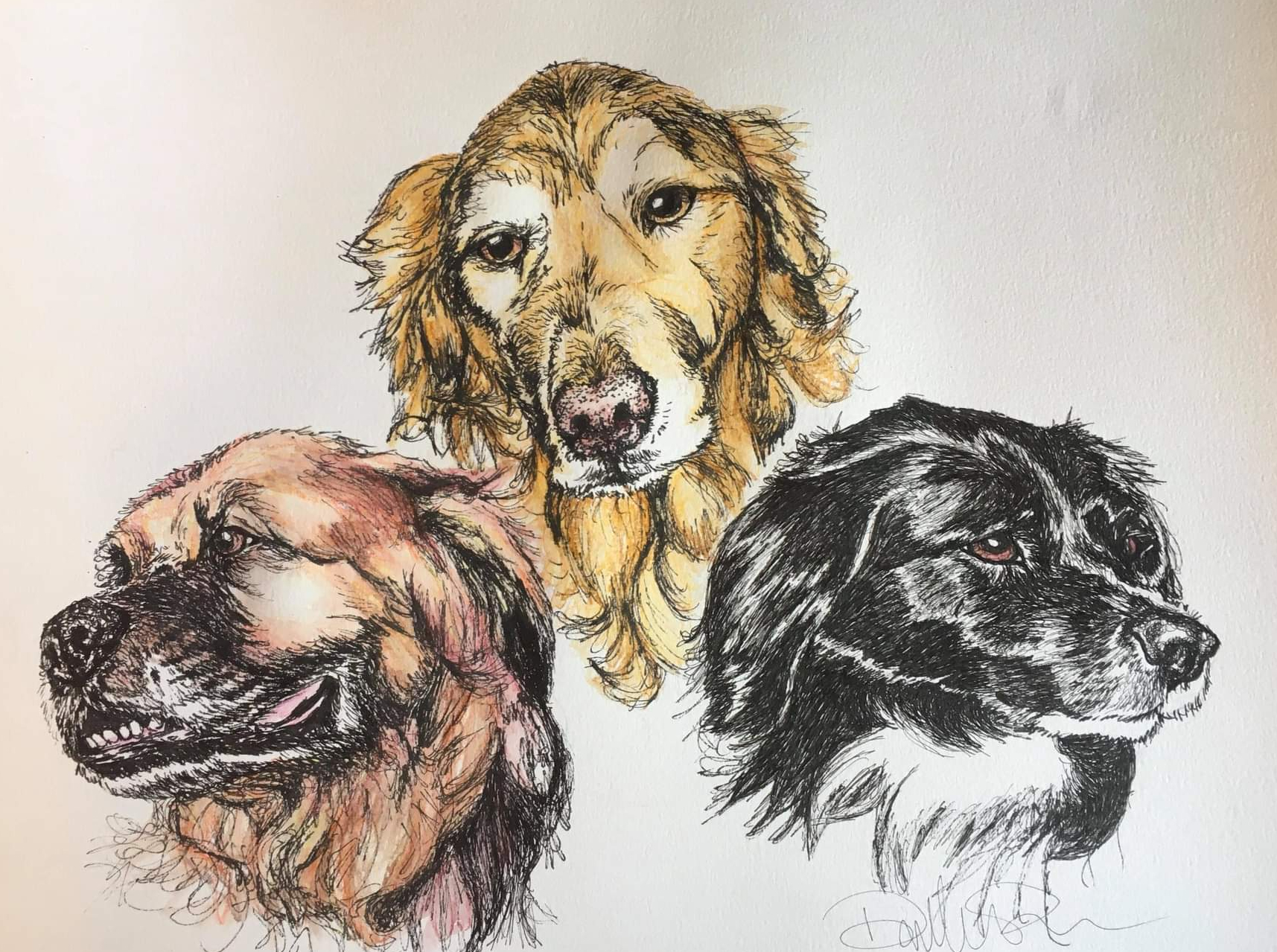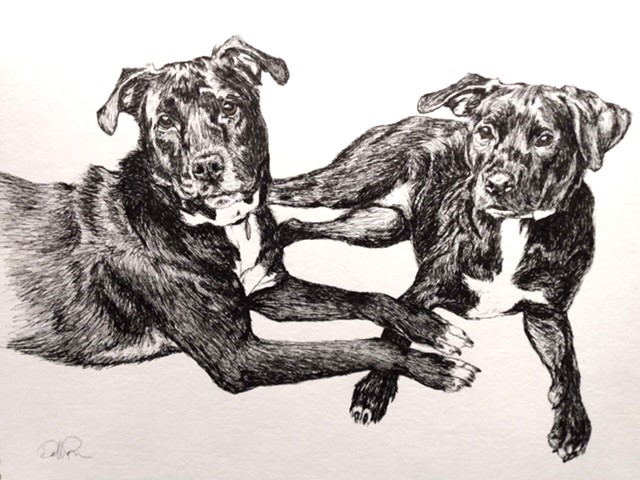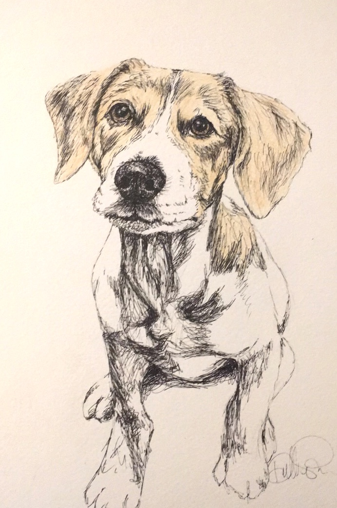 All portraits are done on 9″ x 12″ watercolor paper in ink and watercolor upon request (there is no additional cost to the watercolor). I can add up to 3 pets into one picture for additional costs. I can also do custom sizes and pricing upon request whether you want the portrait smaller or larger (5″x7″ or up to 11″ x 14″). If you would like more than 3 pets in a single portrait I encourage you to reach out and we can discuss how we can make that happen.