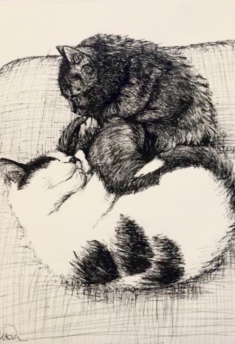 I first start a conversation regarding what you are looking for and work from your photographs. I will find out information about the pet and request a variety of photos in order to see the pet from multiple perspectives and get to know them from your perspective. Drafts and process images are sent to make sure you are happy with the layout and how the image is coming. You have approval of the final draft, or I rework details to meet your satisfaction.